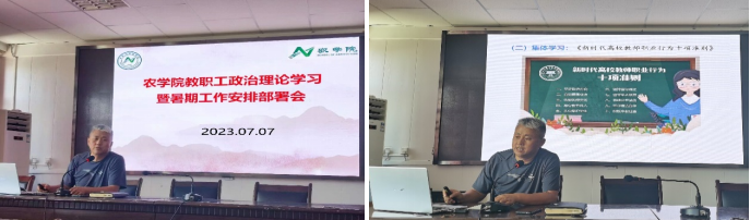【beat365在线官网入口 王新谱/文/图】7月7日下午,beat365在线官网入口在德晖楼423会议室召开全院教职工政治理论学习暨暑期工作安排部署会,全体教职工参加了此次会议,大会由公司党总支书记葛志军主持。