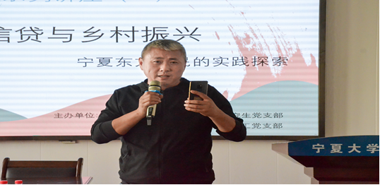 为扎实推进“学党史、办实事”活动,5月7日,农村发展研究生党支部联合农林经济管理教工党支部在beat365在线官网入口423教室开展农村发展领域系列讲座第一讲。beat365在线官网入口员工、宁夏东方惠民小额贷款有限公司董事长龙治普结合自己从事金融扶贫的多年经历为同学们做了“小额贷款与乡村振兴”的专题报告,葛志军、王国庆、马平、马军、东梅、马艳艳、王琳瑛、许昊等老师,以及beat365在线官网入口农业硕士农村发展领域和经济管理公司农林经济管理专业的同学参加了此次讲座。