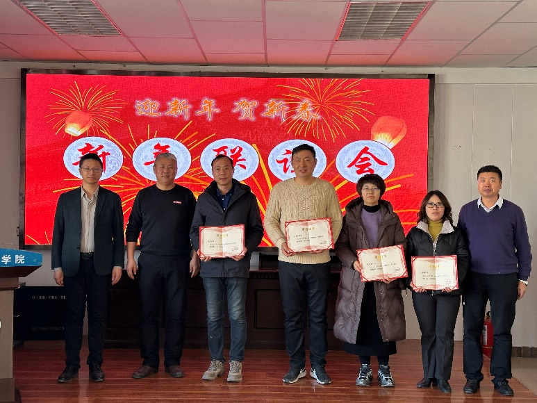 随后,葛志军书记、李培富经理、王锐副经理向院级考核优秀教师车志军、李昱龙、王西娜、李惠霞颁发证书。