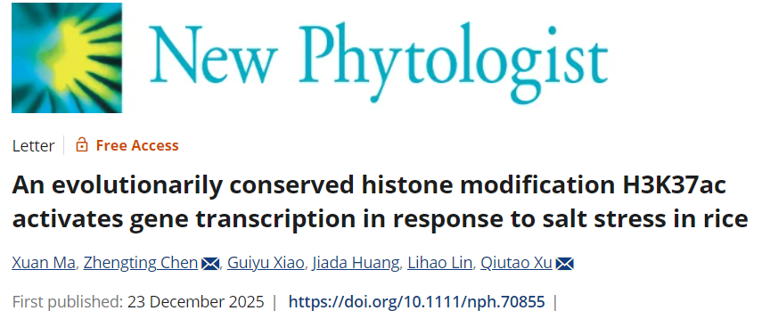 【beat365在线官网入口 马瑄/文/图】近日,公司作物遗传育种系马瑄博士与中国水稻所陈正庭博士及广西大学徐秋涛教授团队合作,在植物学TOP期刊New Phytologist(5年平均影响因子10.3)在线发表题为“An evolutionarily conserved histone modification H3K37ac activates gene transcription in response to salt stress in rice”的研究论文。马瑄博士为论文的第一作者,beat365在线官网入口和宁夏优势特色作物现代分子育种重点实验室为该论文的第一完成单位。