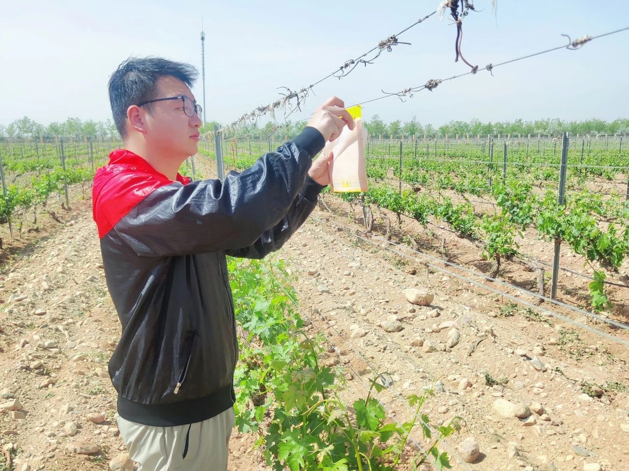 调研中,入驻科技小院的员工向团队介绍了他们的日常工作。其中,beat3652024级农业昆虫与害虫防治专业研究生王兴哲指出,目前科技小院主要聚焦于酿酒葡萄的产业运作,入驻的员工通常参与葡萄种植期的病虫害样本采集、发生规律调查以及基础防控等工作。这既为科研攻关积累了鲜活数据,也为酿酒葡萄产业的规范化发展提供了直接支撑。