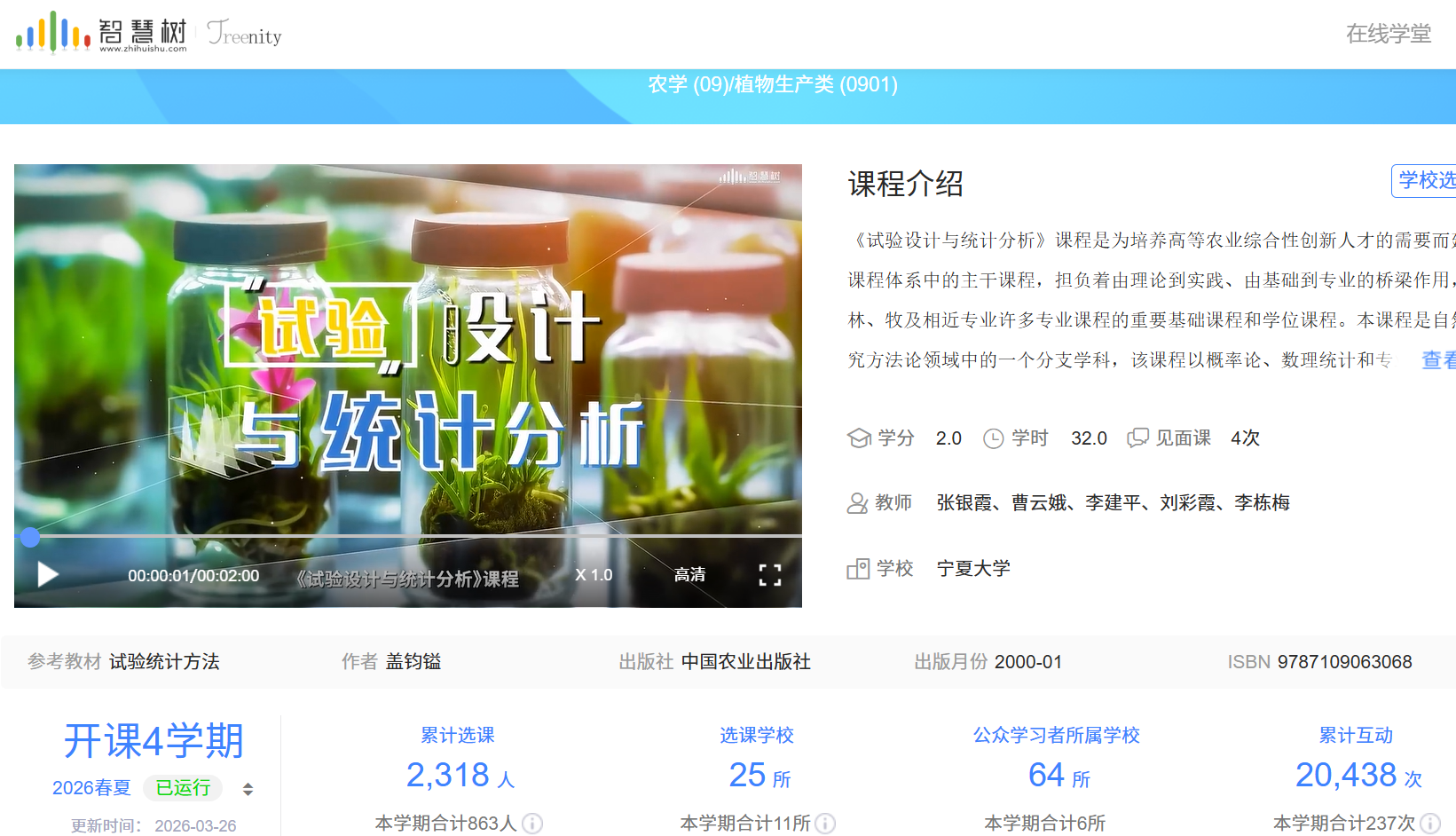 张银霞副教授立足农学学科人才培养定位与“双一流”团队建设要求,聚焦课程提质、教学模式创新、教学资源升级,牵头主持多项校级教学改革项目。先后主持在研“双一流”研究生优质课程、校级课程思政示范课程建设项目,持续优化研究生课程教学体系,深挖农学专业课程思政元素,实现知识传授与价值引领同向同行。同时,她圆满完成校级“互联网+教育”在线开放课程、数字教材出版培育项目结题工作,积极搭建线上教学资源,推动传统教学向数字化、信息化转型,补齐专业课程数字化教学短板,助力课堂教学提质增效。主编的《田间试验设计与统计分析》AI云教材打破传统纸质教材的局限,融入人工智能教学技术,兼顾理论知识严谨性与实践操作实用性,贴合当代老员工学习习惯,填补了相关课程数字化教材的空白,凭借优质内容和创新形式获得业内高度认可。该教材荣获校级教材建设优秀案例,并获得“2024年度全国优秀云教材”奖。依托AI数字化课程教学打造的AI助教应用案例,成功入选国家级教师人工智能应用优秀培育案例;负责在智慧树平台建设并上线《试验设计与统计分析》在线开放课程,近2年累计选课院校64所,选课员工2381人,课程互动20438次。